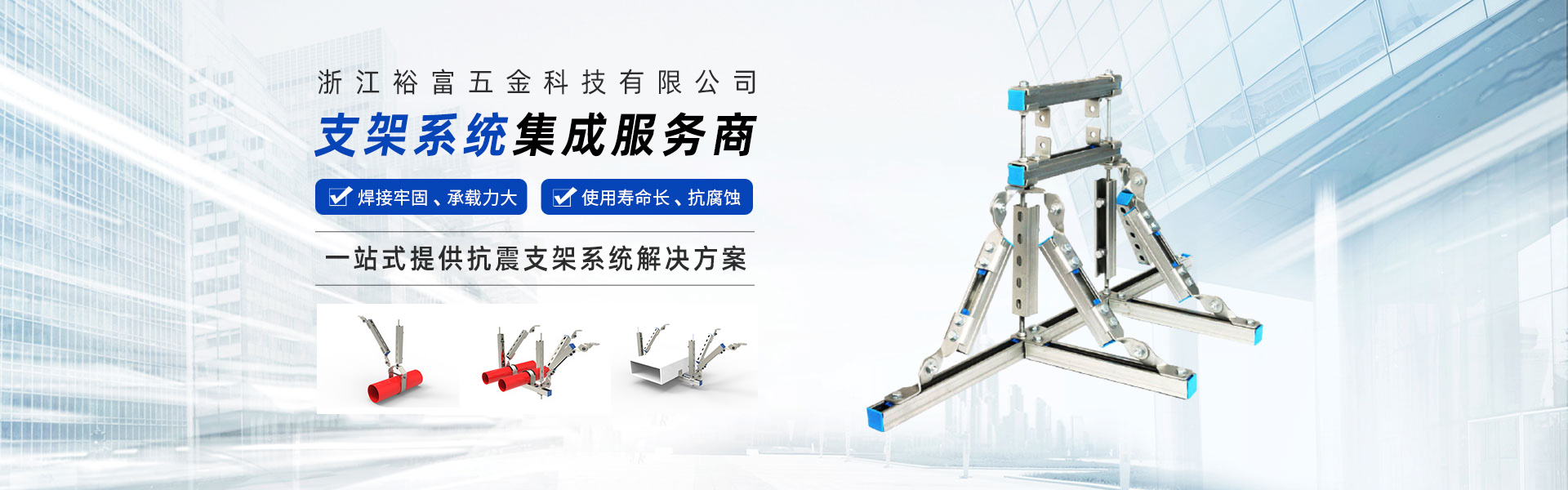 浙江裕富五金科技有限公司位于美麗的杭州臨安青山湖畔,注冊(cè)資金5000萬人民幣。是一家集研發(fā)、設(shè)計(jì)、制造、銷售、安裝、技術(shù)服務(wù)于一體的,專業(yè)從事抗震支吊架、管廊支吊架、綜合承重支吊架等,多功能、多元化的現(xiàn)代新興科技企業(yè)。 公司技術(shù)力量雄厚、設(shè)備齊全、工藝先進(jìn)、管理體系高效完善,在注重產(chǎn)品設(shè)計(jì)、選材、結(jié)構(gòu)工藝等細(xì)節(jié)基礎(chǔ)上,嚴(yán)格按照GB/T37267-2018、GB/T9978.1-2008等國(guó)家標(biāo)準(zhǔn)進(jìn)行生產(chǎn)和管理,立足本土并扎根施工現(xiàn)場(chǎng),多次調(diào)研測(cè)試并持續(xù)改進(jìn),產(chǎn)品通過了國(guó)家建筑工程質(zhì)量監(jiān)督檢驗(yàn)中心的檢測(cè),打造了“裕富欣”品牌。